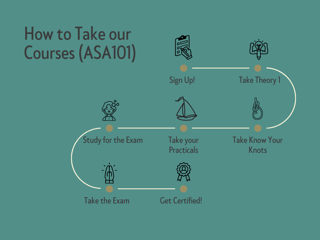 Upon completion, students will be able to skipper a small sailboat, and crew on larger boats. ASA (American Sailing Association) Basic Keelboat Sailing (ASA 101) certification is available upon completion of this course.